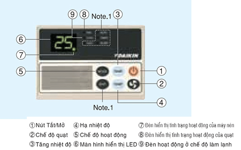 Hiển thị thời gian vệ sinh phin lọc khí và chức năng tự kiểm tra giúp bảo trì đơn giản.